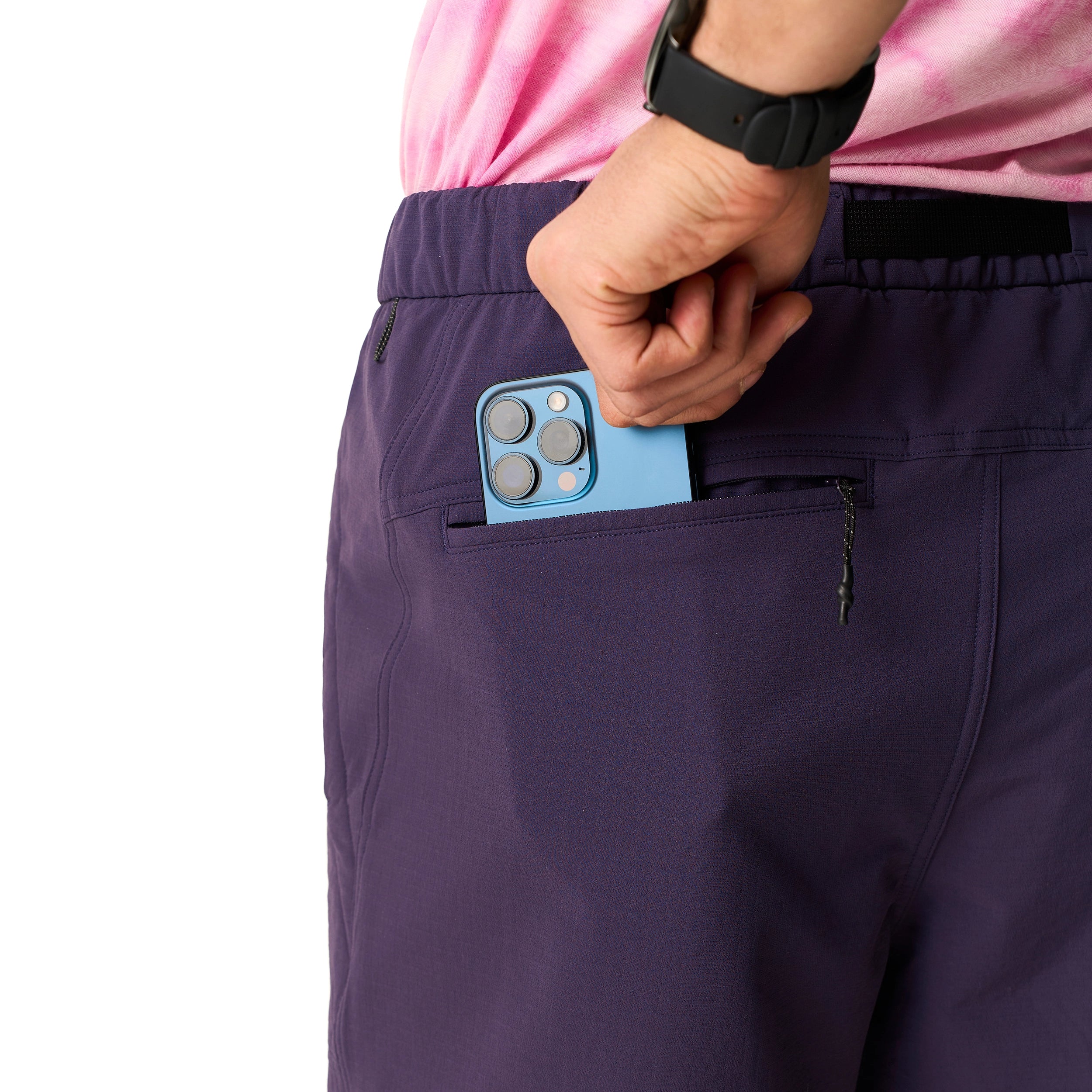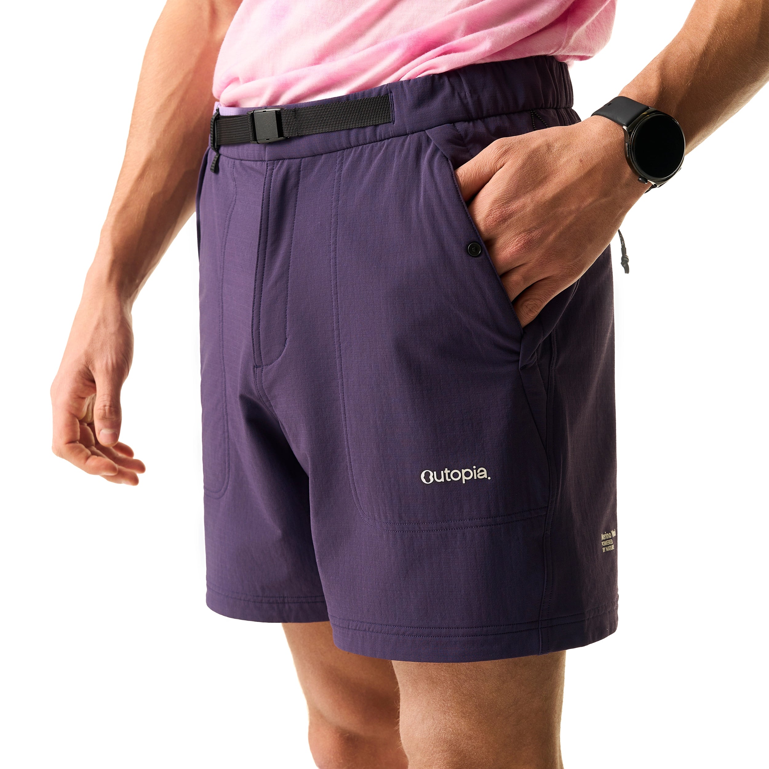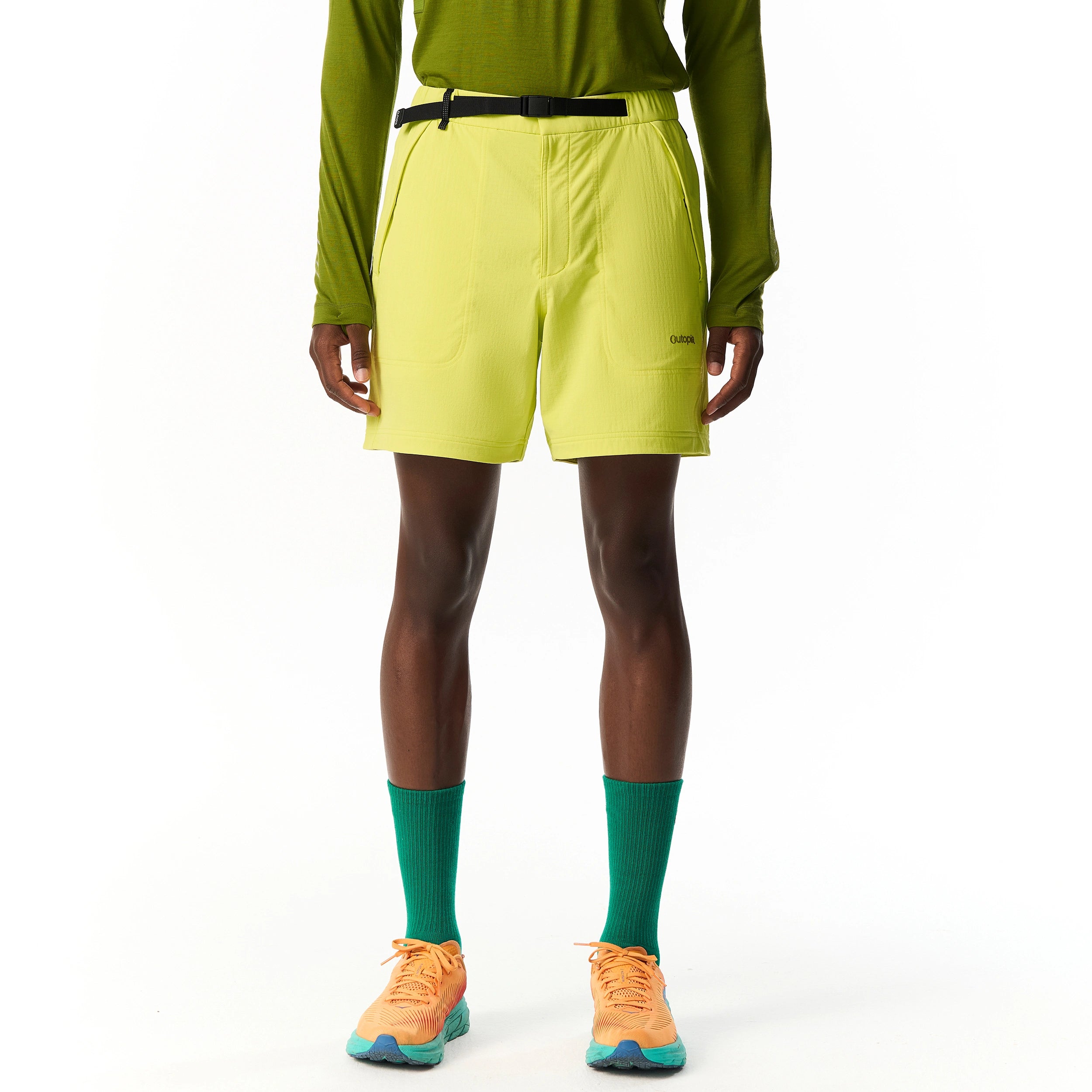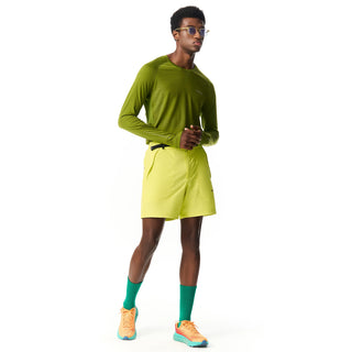 The Men's Storm collection combines a durable, wind- and water-resistant 4-way stretch shell with a soft Merino wool lining for natural warmth, moisture management, and odor control. Designed for active use, they offer excellent freedom of movement with articulated panels and stretchy fabric. Features include an adjustable elastic waistband and multiple secure pockets, making these shorts ideal for cool-weather running, hiking, and training.