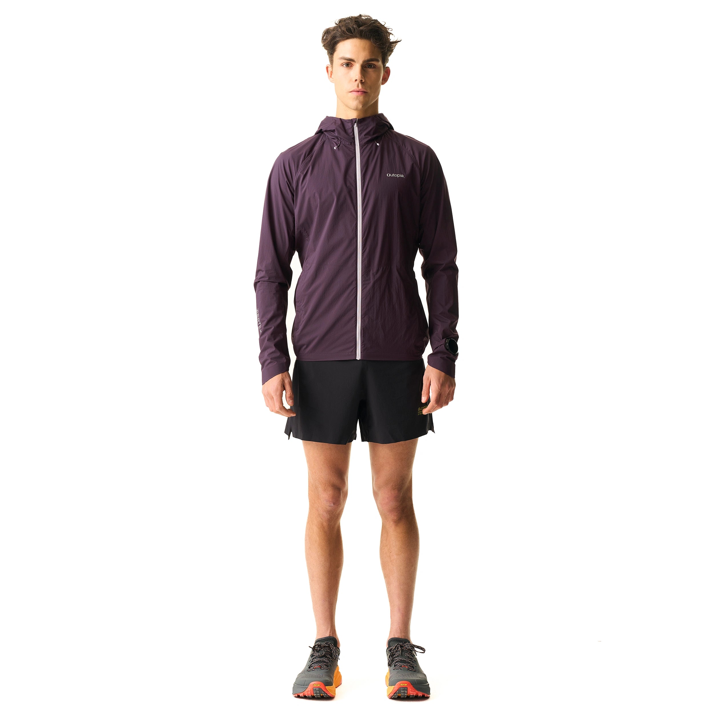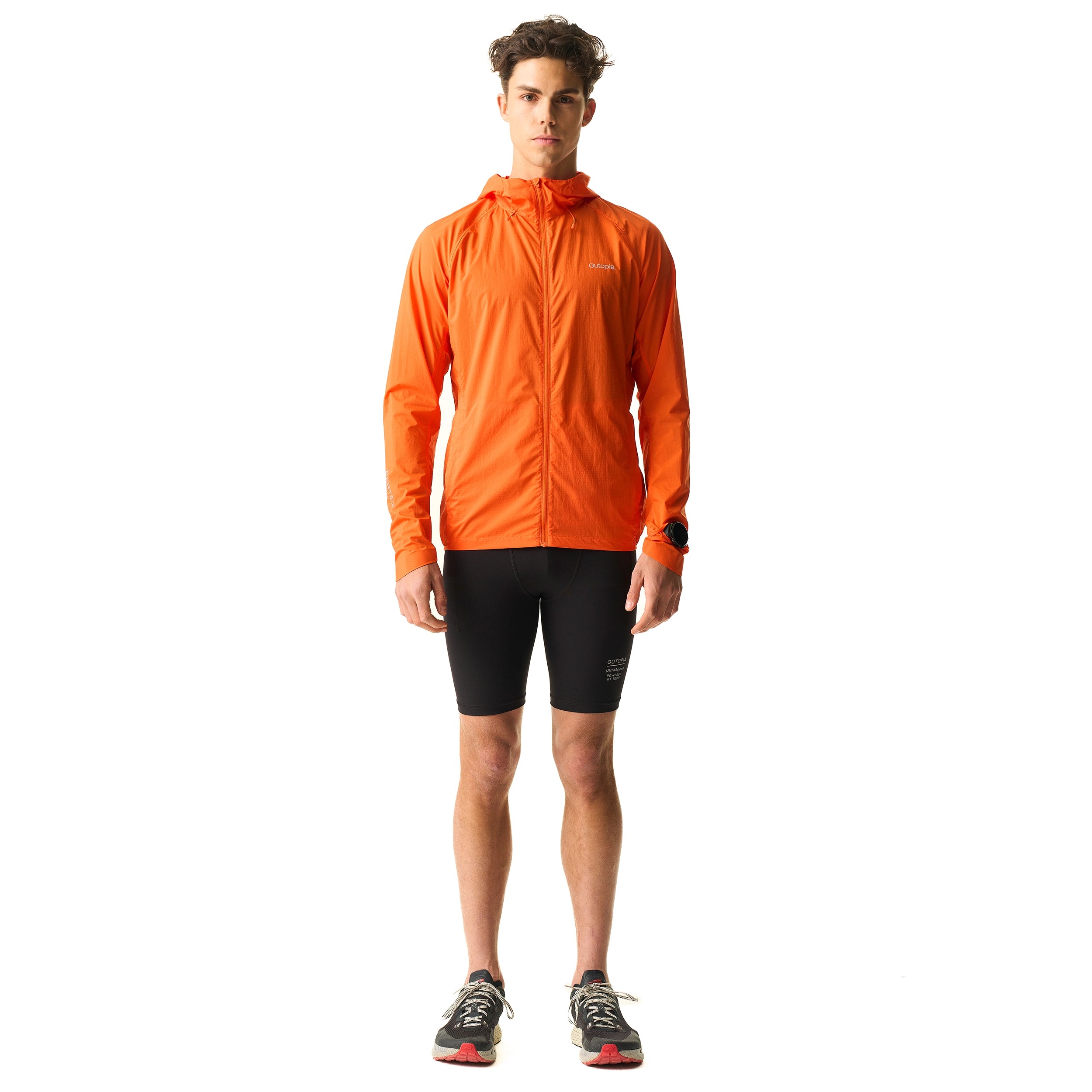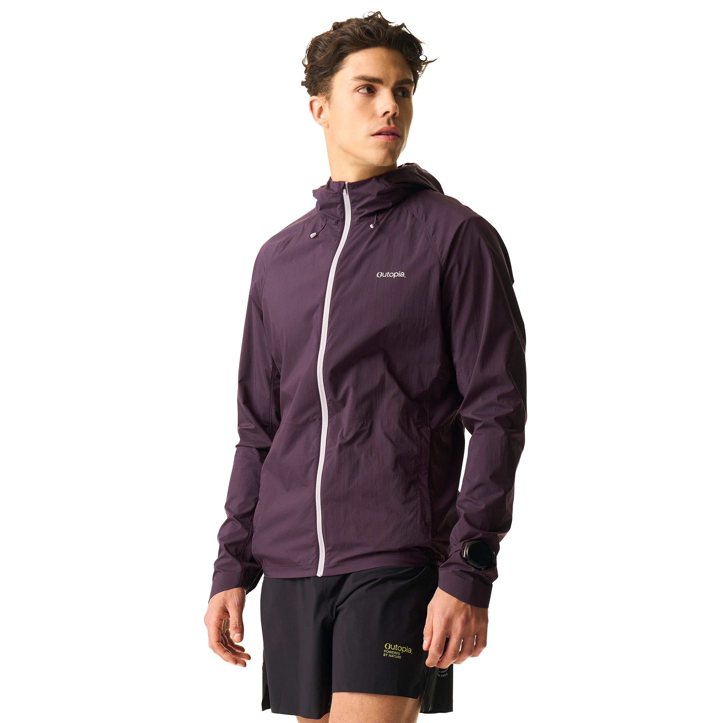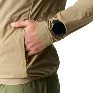 The design thoughtfully addresses the nuances of active motion: an adjustable hood with a ponytail hole offers a seamless fit, protective Horse-hoof cuffs, and an elasticized hem keeps the chill out. A dedicated watch window offers instant access to your data. Best of all, the entire jacket fits in its own pocket.