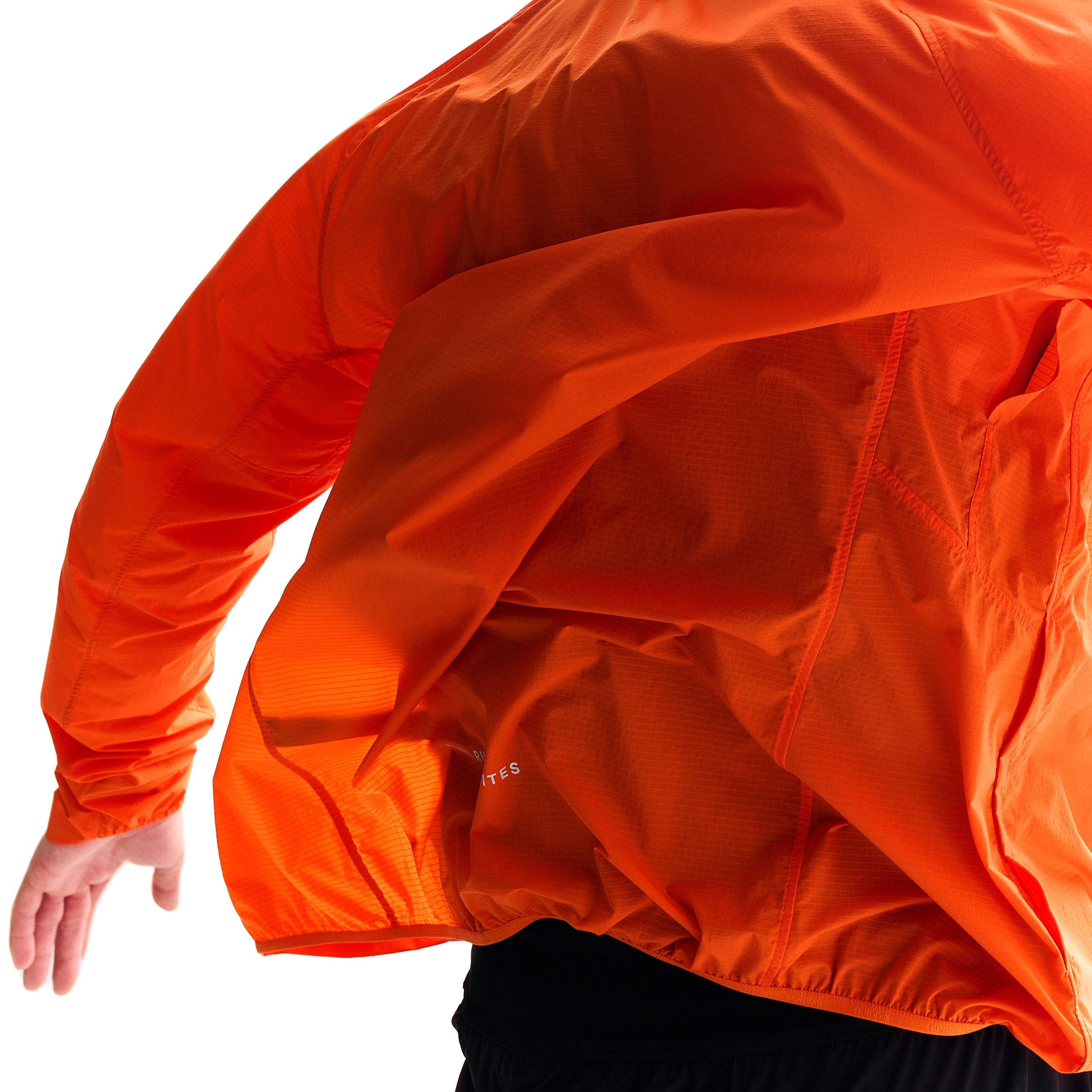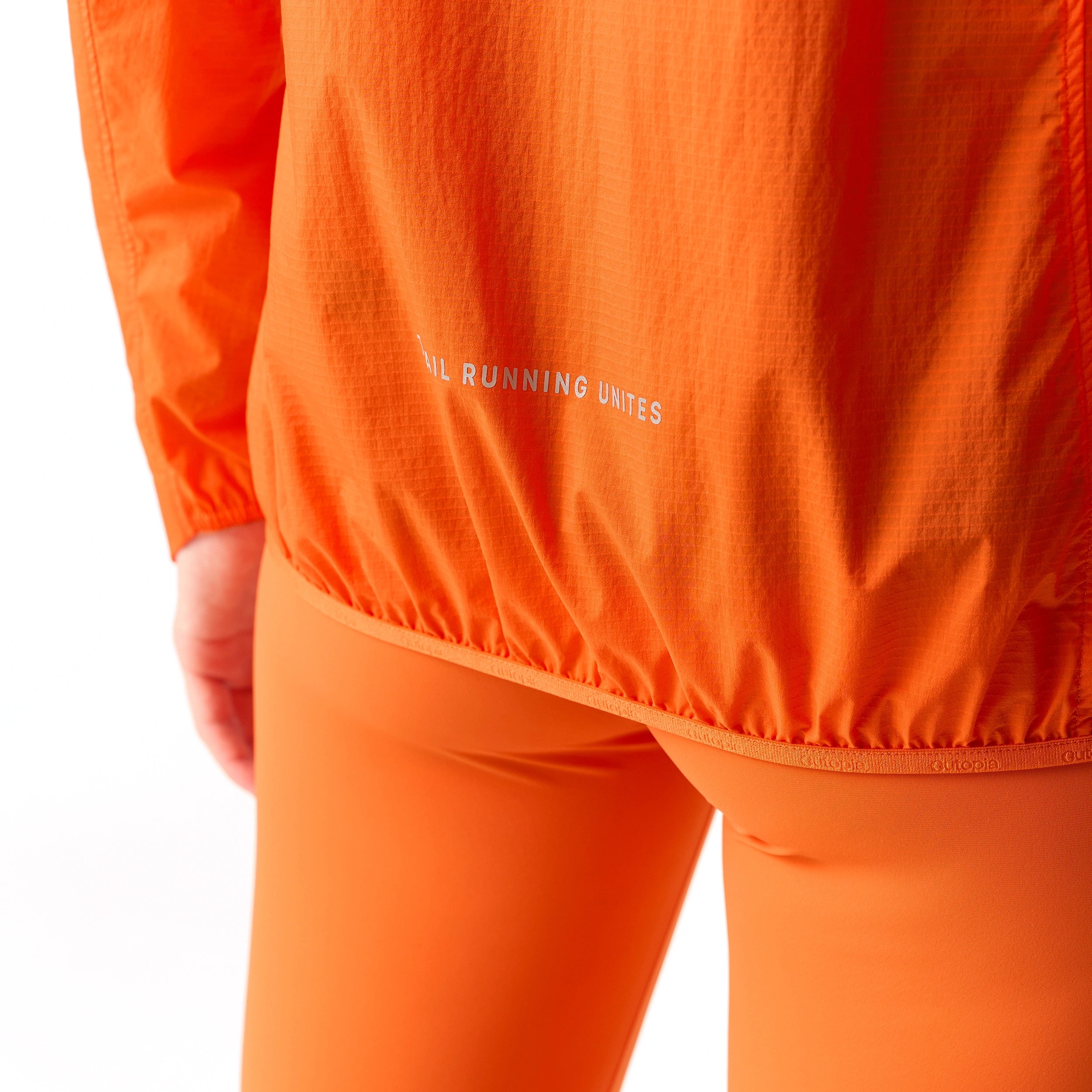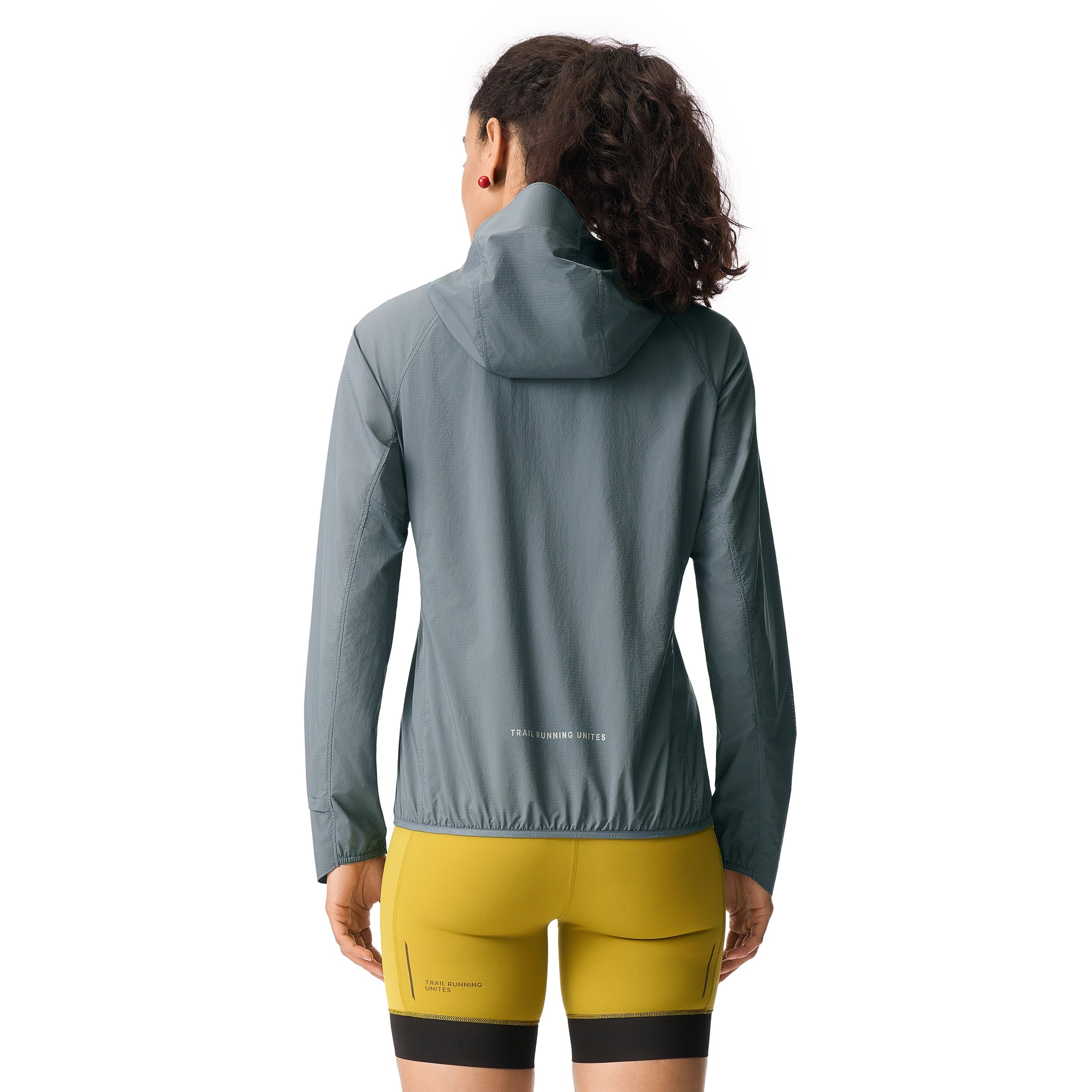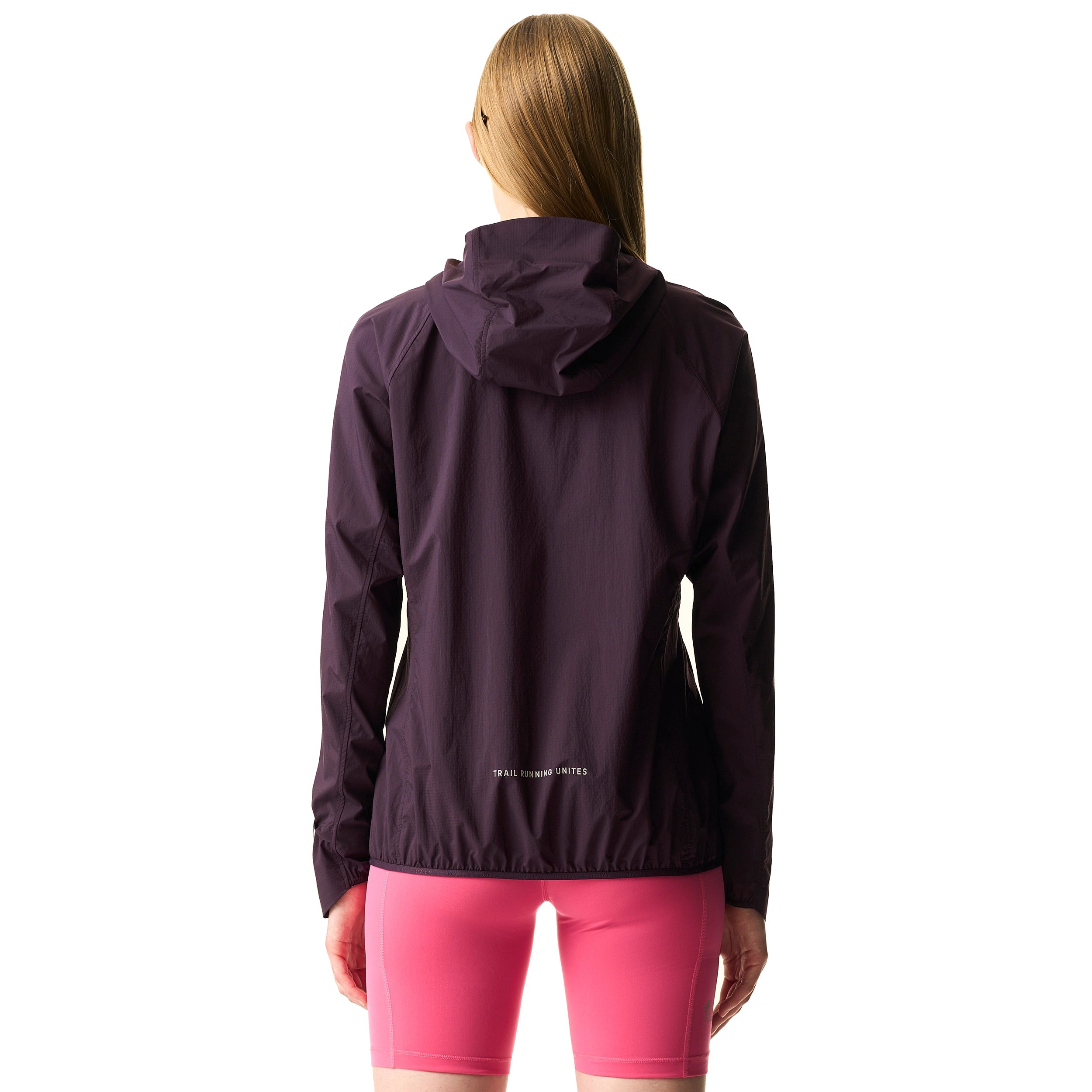 The design thoughtfully addresses the nuances of active motion: an adjustable hood with a ponytail hole offers a seamless fit, protective Horse-hoof cuffs, and an elasticized hem keeps the chill out. A dedicated watch window offers instant access to your data. Best of all, the entire jacket fits in its own pocket.