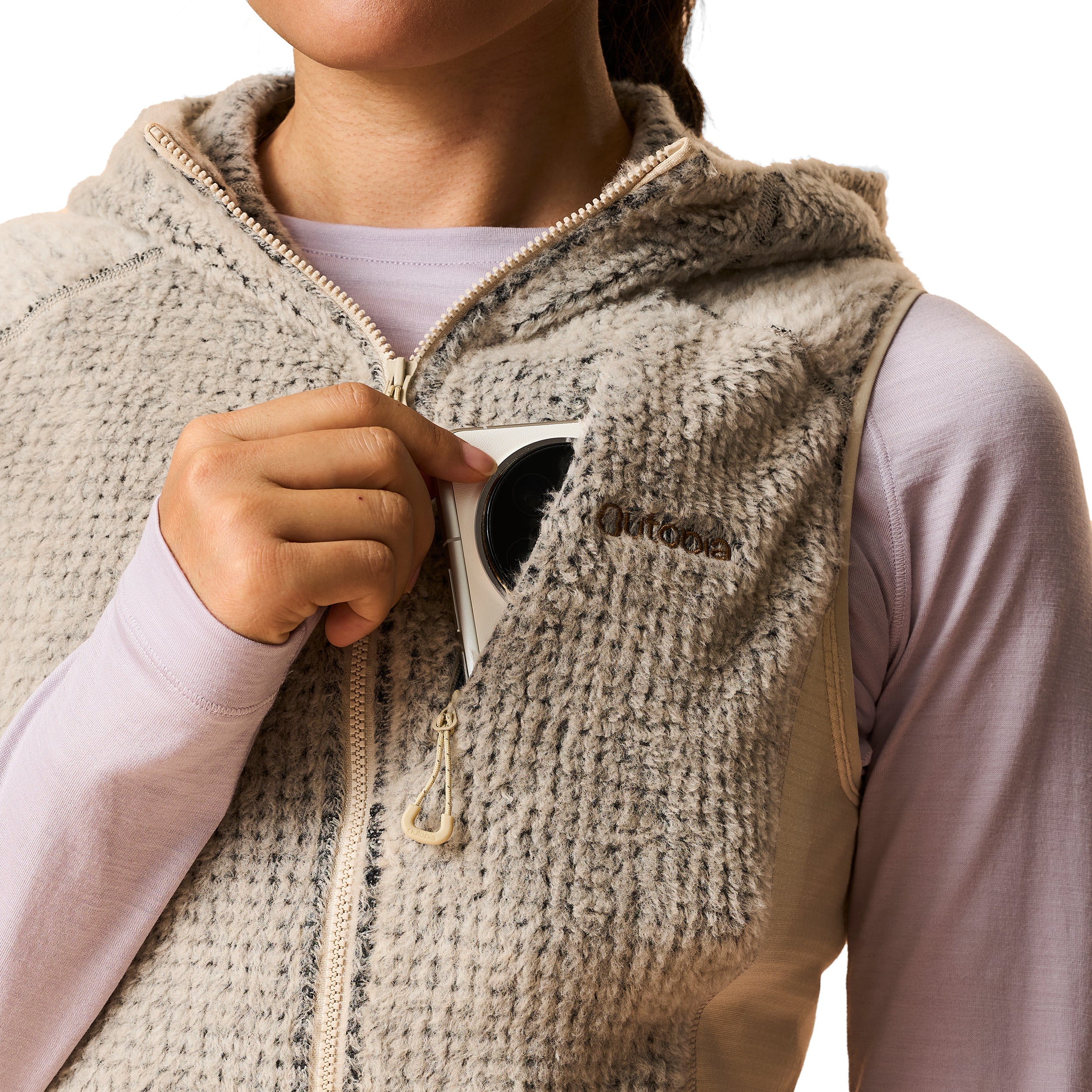This lightweight fleece vest uses Polartec® High Loft™ fabric for exceptional warmth without bulk. Its breathable, fast-drying, and water-repellent design keeps you dry and comfortable during activity. The athletic fit includes stretch panels for freedom of movement, a fitted hood for added warmth, and multiple zippered pockets for secure storage. Thumbholes provide extra coverage for cooler days, making it a versatile and durable layering option.