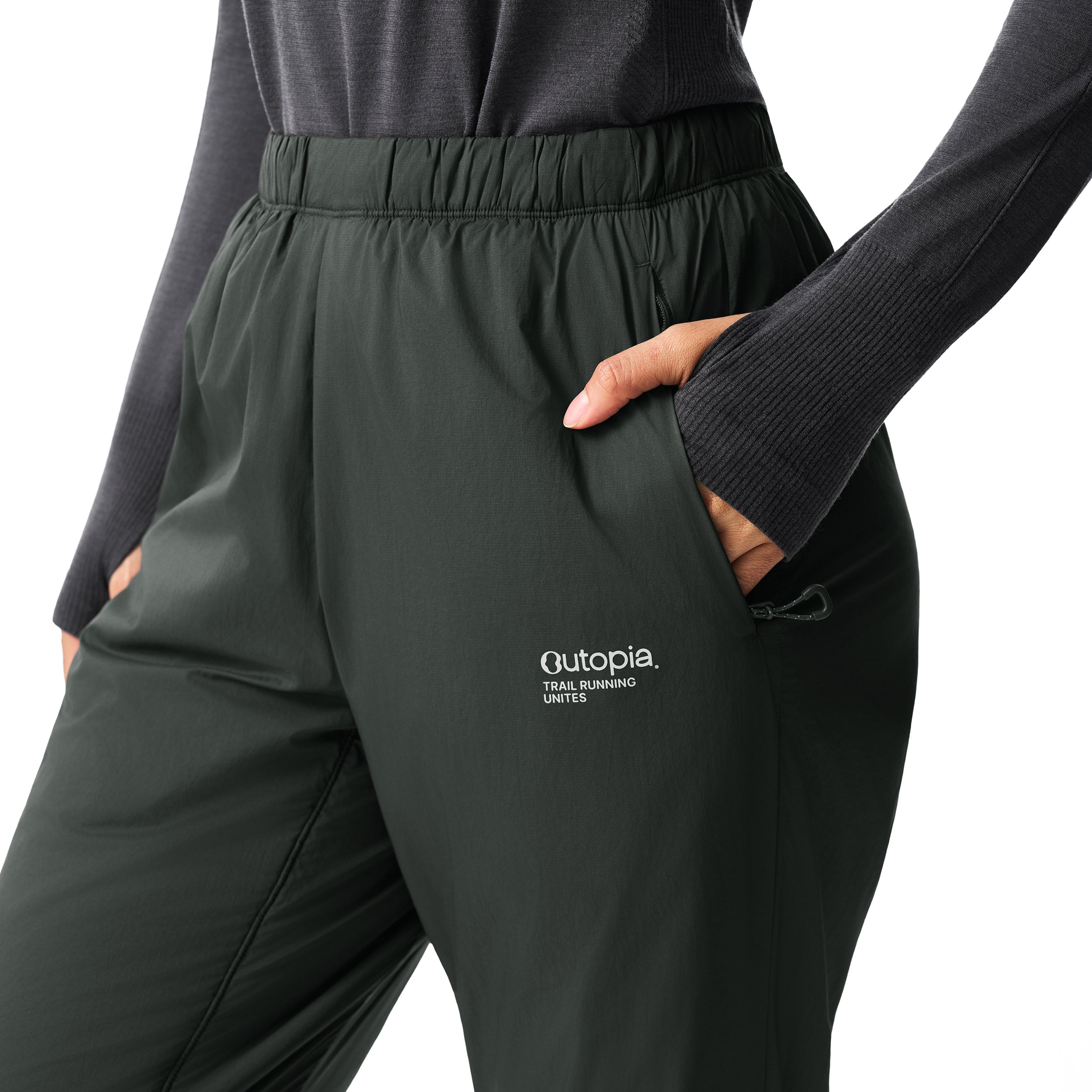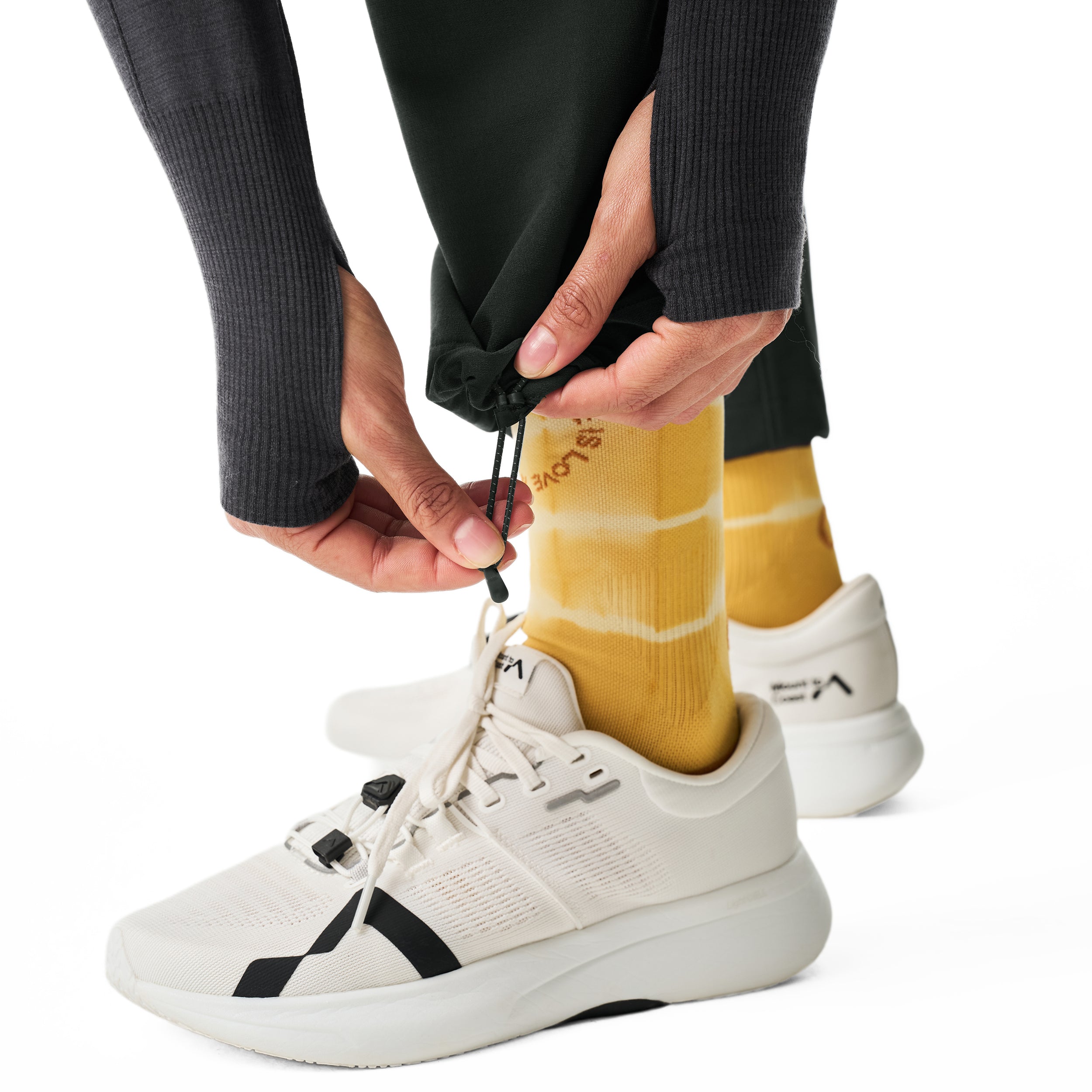 Designed for trail running, mountaineering, and commuting. Features include an elastic drawstring waist, a hidden security pocket inside the right hand-pocket, and the ability to self-pack into the left pocket. The articulated knee design ensures unrestricted movement, while adjustable cuffs seal out wind. Reflective logos provide safety for night running. From urban commutes to alpine camping, these pants handle a ten-degree temperature variance, offering lightweight, all-weather warmth and protection for your legs.