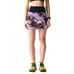 The Wild Run collection features a 360° storage waistband to carry essentials without bounce or bulk. Its lightweight, breathable outer skirt dries quickly and stays soft, while the stretchy inner short offers support and prevents chafing. Designed for unrestricted movement, it combines the freedom of a skirt with the coverage of shorts, making it ideal for confident, comfortable runs on any terrain.